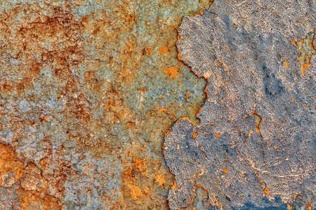 Texture of old rusty surface with peeling paint. Abstract grunge background.
