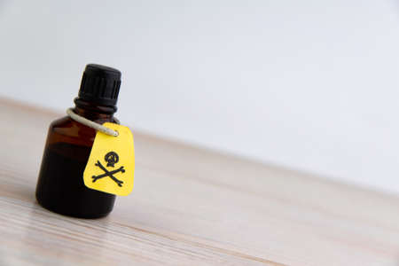 a vial of poison on a light background, short focus, toning