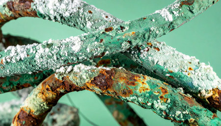 A macro view captures the intricate and colorful decay of heavy industrial chains. Once symbols of strength and connection, they are now transformed by time and the elements into a textured abstract of rust, verdigris, and patina, telling a story of neglect and the relentless process of oxidation.