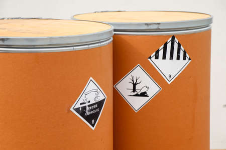 Warning symbol for chemical hazard on chemical container in industry