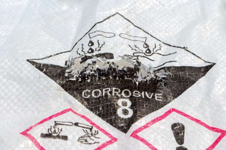 A bag of corrosive, torn and dangerous chemical