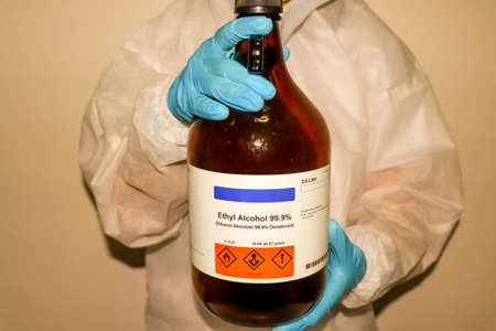 ethyl alcohol, a chemical used in laboratories and flammable