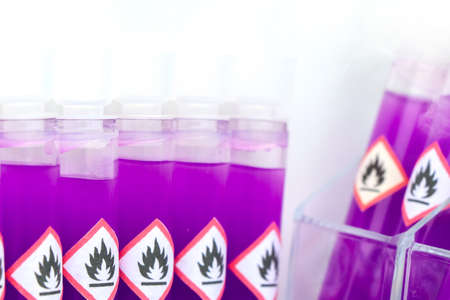 flammable chemicals in test tubes and flammable symbol