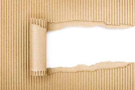 Close-up of torn cardboard on white background.