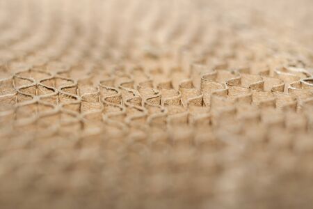 Carton or cardboard packing material. Texture of corrugated paper sheets made from cellulose. Supplies for creating boxes and packaging. Pasteboard background. Natural brown cardboard surface.