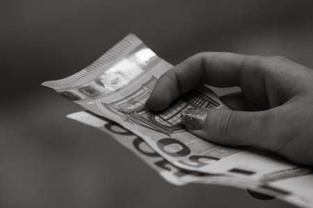 man hand holding money, selective focus