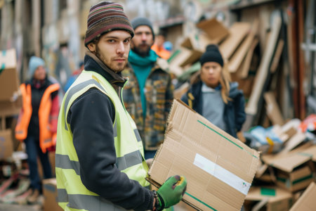 Warehouse worker sorting cardboard. waste sorting and recycling