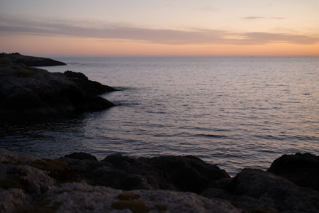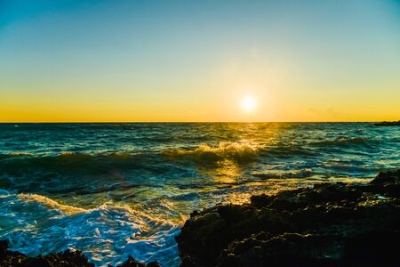 beautiful sunset and rocky sea beach