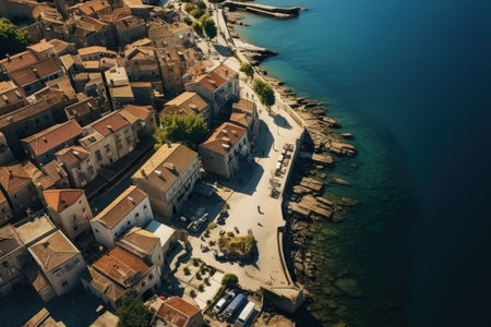 Aerial view of the old town of Rovinj, Croatia, Aerial view of the old town, Vacation and adventure, Town and sea, AI Generated