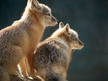 portrait of Korsak or steppe Fox (Vulpes corsac), predatory mammal of the genus of foxes of the canine family