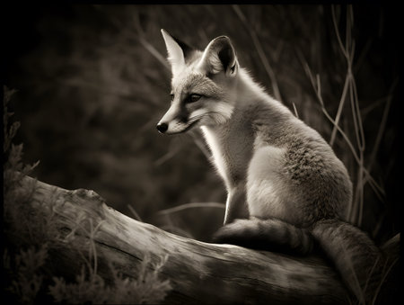 ground gray fox illustration tail gaze, prey instincts, prowess predator ground gray fox