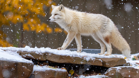 Charming arctic fox and white snow fox play joyfully in the snow covered wilderness