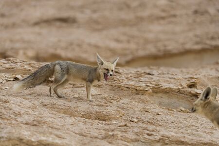 Portrait of yawning rüppell's fox, Vulpes rueppellii, in the Egyptian White Desert National Park