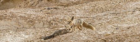 Amazing shot of couple of rüppell's fox, Vulpes rueppellii, during a tourist tour in the Egyptian White Desert National Park