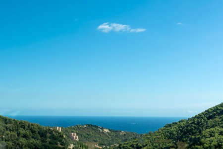 Explore the breathtaking landscape of Cap Corse, where lush green maquis meets winding roads and the deep blue Mediterranean under a clear sky.