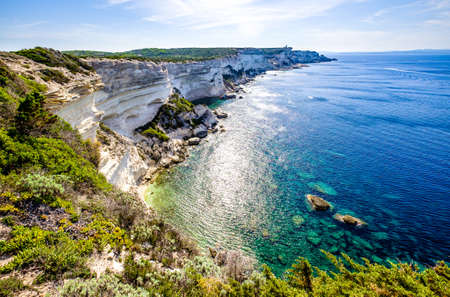 famous coastline and old town of bonifacio on corsica
