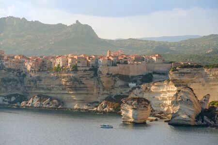 Bonifacio Old City above-the Mediterranean Sea supported with limestone cliffs. Corsica Island, France