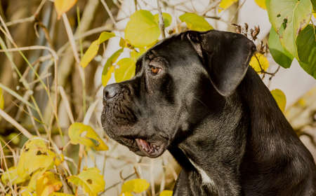 Dog Italian Cane Corso Autumn Portrait. close-up