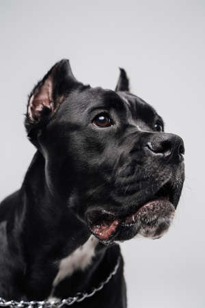 Closeup portrait of cane corso puppy six month