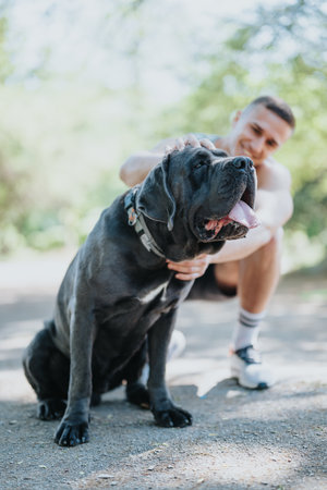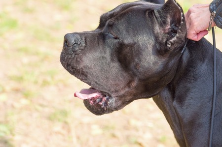 Portrait of a dog outdoors. Adult male Cane Corso. Animal love concept