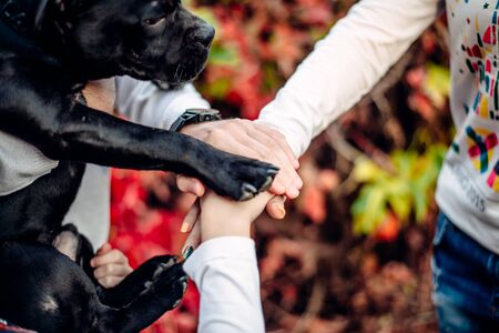 Friendship between human and dog - shaking hand and paw