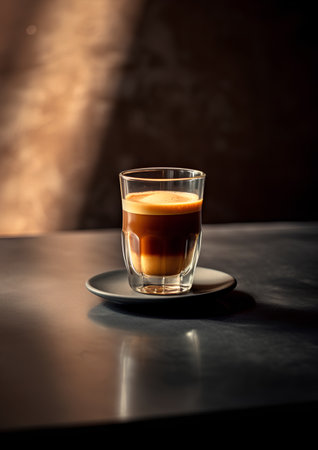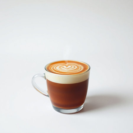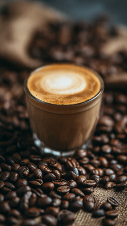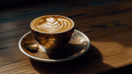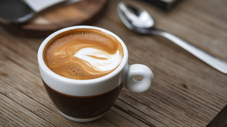 A close-up shot of a delicate and elegant cup of gourmet coffee, its smooth, frothy surface beautifully adorned with