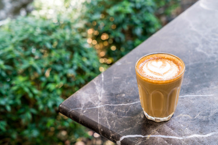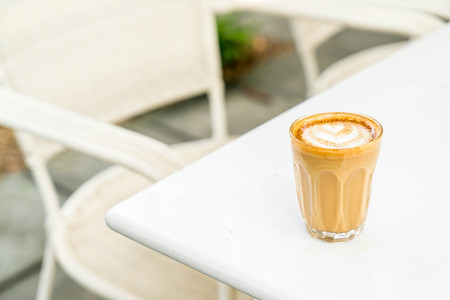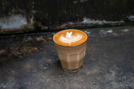 Hot coffee,Coffee and milk in a glass Put on the bar
