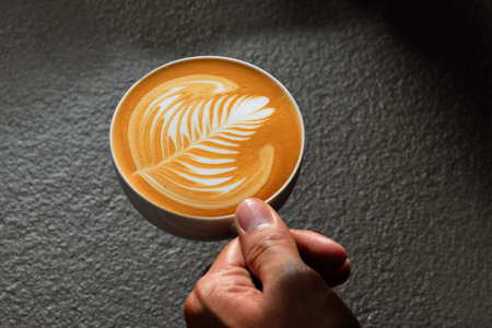 Coffee Latte leaf pattern face on black table