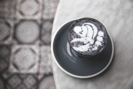 Charcoal super latte on marble background.