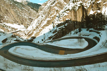 Winding road in the mountains. Beautiful landscape with a mountain road.