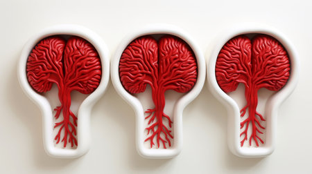 A brain with red veins and a background