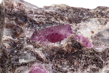 macro mineral stone ruby on a white background close-up