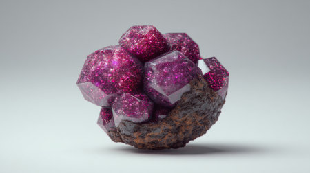 AI Generated. Sparkling ruby crystal cluster on black background