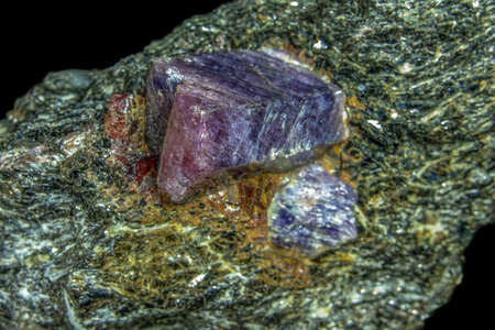 Macro mineral stone Spinel on a black background close up