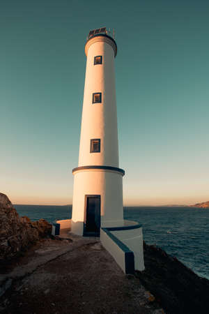 Cape Vilan Lighthouse, Cabo Vilano, in Galicia at sunset, Spain