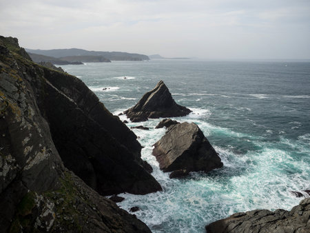 Panorama view of cape Punta de o Brual atlantic ocean sea cliff coast in San Xiao Vilarrube Valdovino A Coruna Galicia Spain Europe