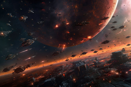 a massive space battle between fleets of starships, created with generative ai
