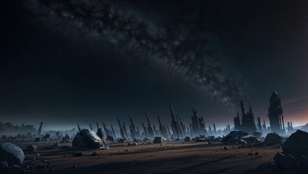 An AI generated illustration of Alien spacecraft soaring above majestic rock formations