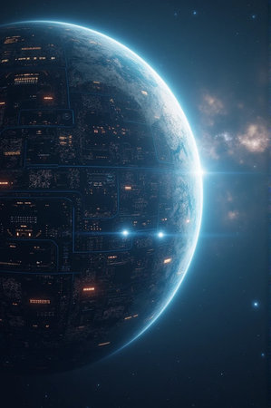 futuristic space station orbiting the earth with a view of the stars and planets, created with generative ai