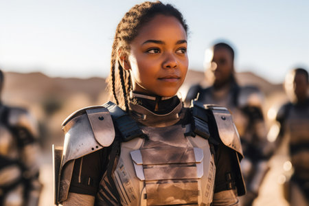 Plastic army men in futuristic suits battle on outdoor battlefield generated by artificial intelligence