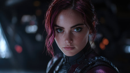 Intense gaze of a young woman with vibrant pink hair