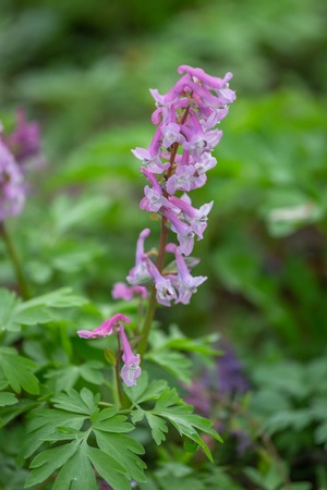 Corydalis solida on a garden. Traditional spring plant in the forest of northern Europe and Asia. Seasonal flowers background concept