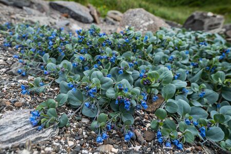 Oysterplant - Mertensia maritima, beautiful rare blue flower from Atlantic islands, Runde, Norway.