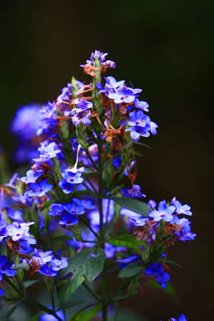 A close up of a plant with blue flowers, forget-me-not flower. High quality photo