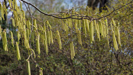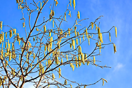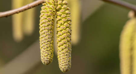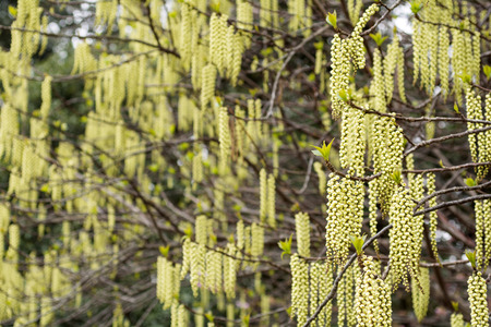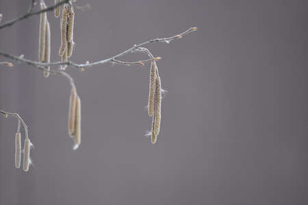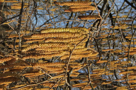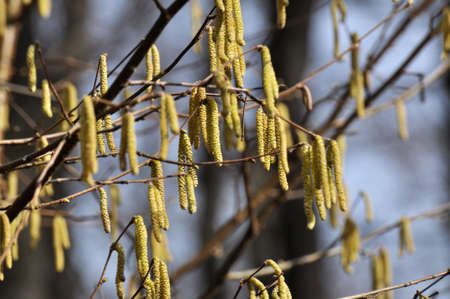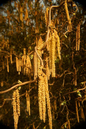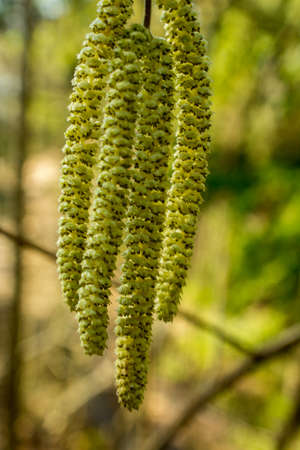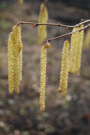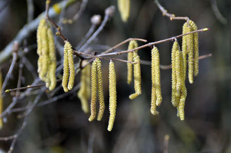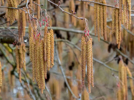 Hazelnut catkin, Corylus avellana, is a native bush or tree species that can cause allergies.