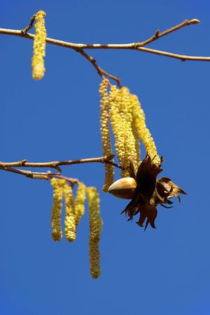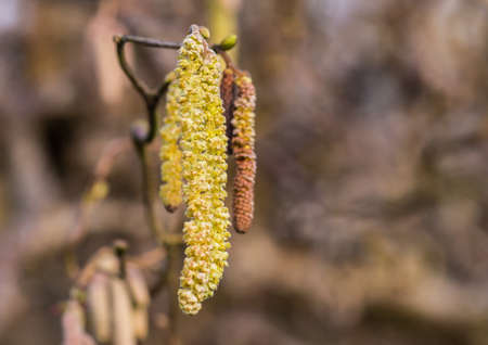 Hazelnut catkin, Corylus avellana, is a native bush or tree species that can cause allergies.