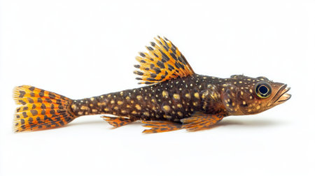 Bristlenose Pleco a freshwater fish species known for its unique appearance displays its vibrant colors and intricate patterns against a clear white backdrop.