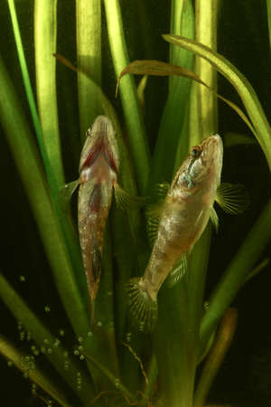 Portrait of Spotted Weather Loach (Cobitis taenia) in Ntural Habitat with Backlight. Wildlife Scene of Nature in Europe.