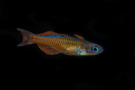 Portrait of freshwater blue-eye fish (Pseudomugil luminatus) in aquarium
