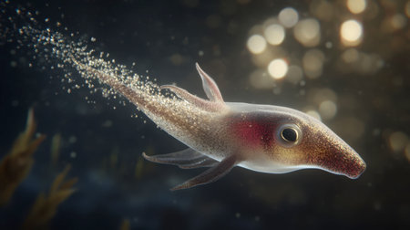 A stunning visual of a squid gracefully swimming through shimmering ocean waters, capturing the beauty and mystery of aquatic life in a tranquil underwater setting.